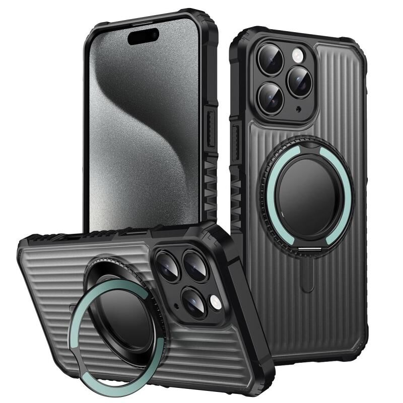 For iPhone 15 Pro Max Skin Sense Rotation Stand Semi-transparent Magsafe Phone Case(Sky Cyan)