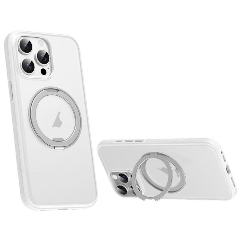 For iPhone 15 Pro Max Solid Color 360 Degree Rotating Holder MagSafe Magnetic Phone Case(White)
