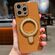 For iPhone 15 Pro Max Solid Color Electroplated Metal Holder Phone Case(Brown)