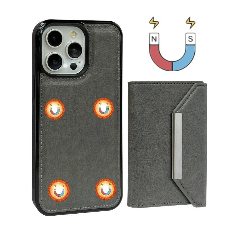 Θήκη κινητού τηλεφώνου για iPhone 15 Pro Max με μονόχρωμη μεταλλική αγκράφα και θήκες για κάρτες (Καφέ)