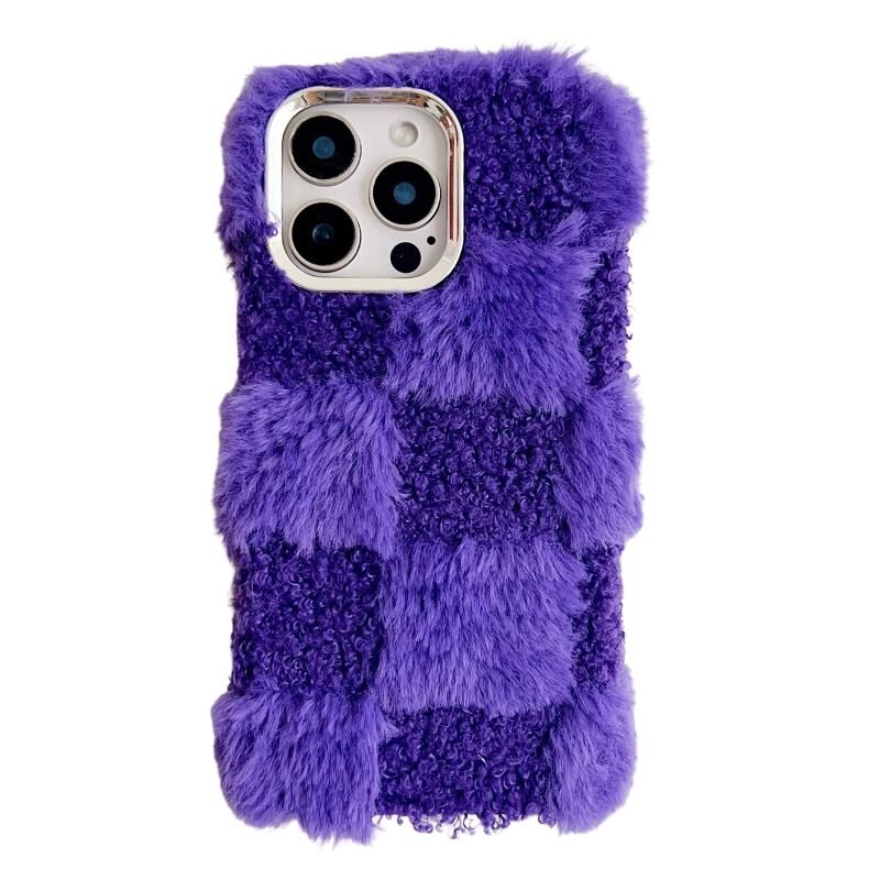 Θήκη τηλεφώνου από βελούδο TPU με τετράγωνο πλέγμα για iPhone 15 Pro Max (Σκούρο Μωβ)