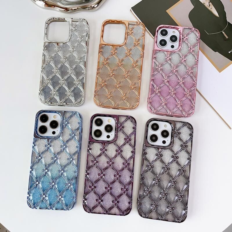 Θήκη τηλεφώνου για iPhone 15 Pro Max, Star Flower, επιμεταλλωμένη TPU με διαβαθμισμένο λαμπερό χαρτί (Μαύρο)