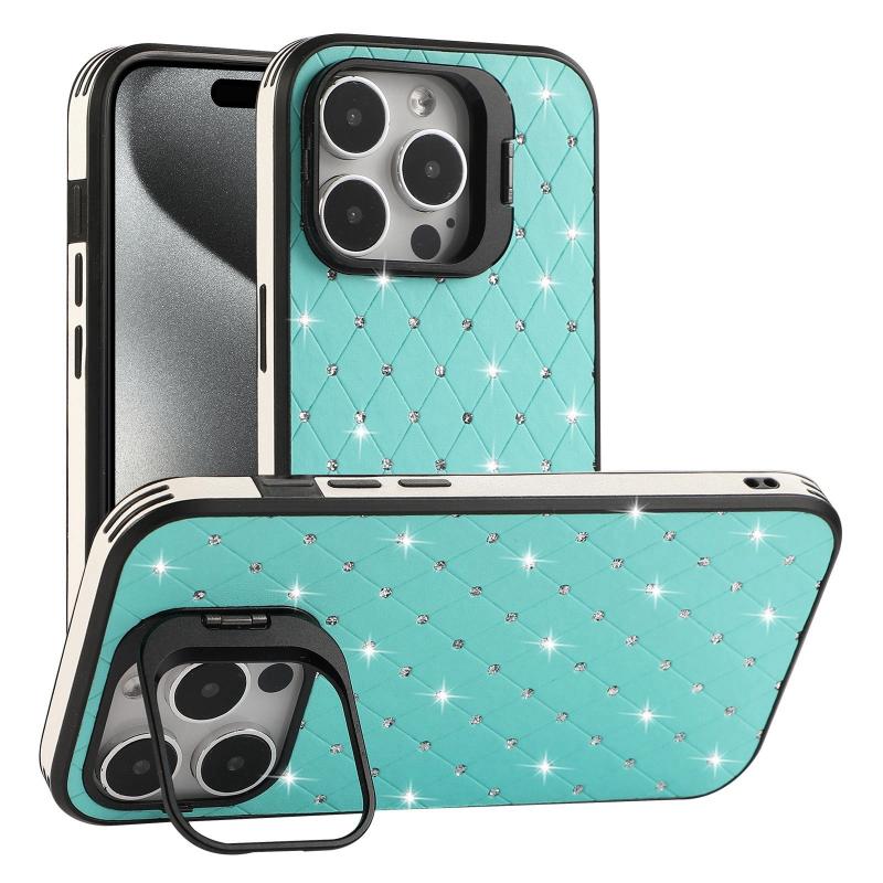 For iPhone 15 Pro Max Starry Bling Diamonds Lens Holder Phone Case(Green)