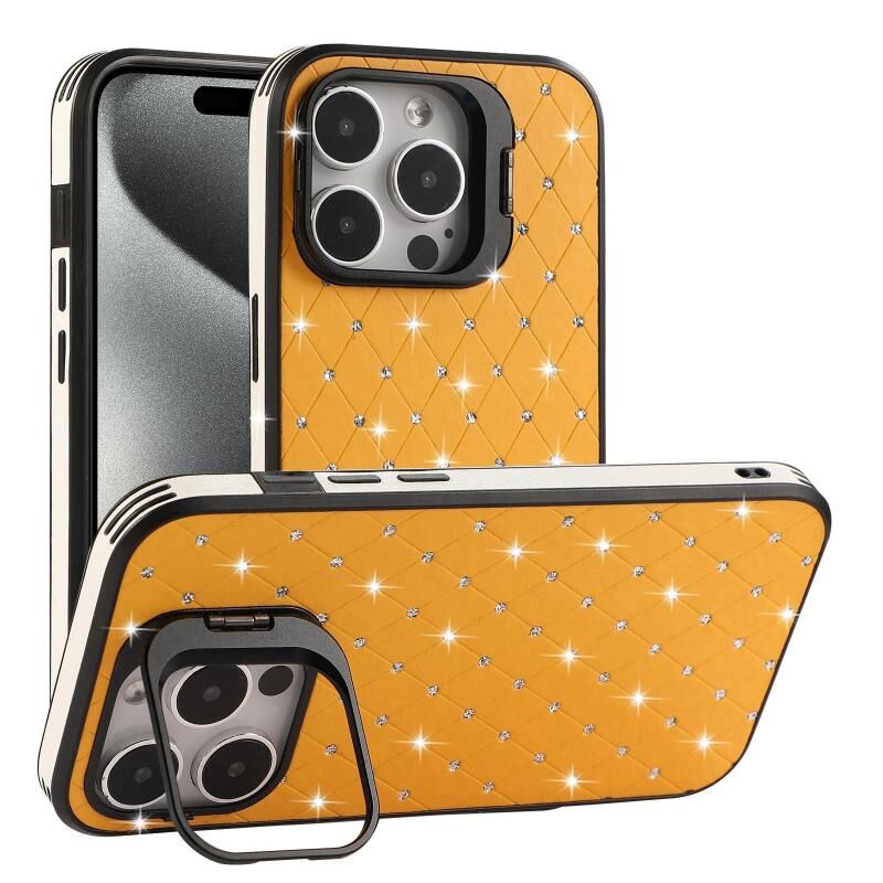 Θήκη τηλεφώνου με βάση φακού διαμαντιών Starry Bling για iPhone 15 Pro Max (Πορτοκαλί)