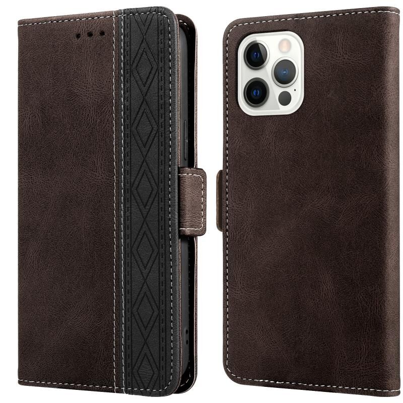 Θήκη τηλεφώνου από δέρμα με πλευρική μαγνητική σύνδεση και προστασία RFID για iPhone 15 Pro Max (Καφέ)