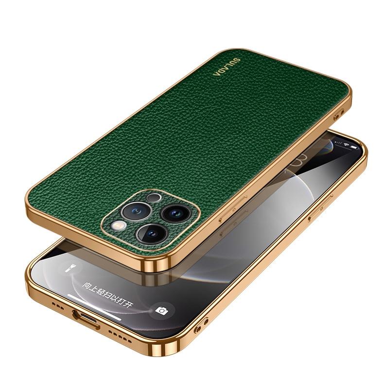 For iPhone 15 Pro Max SULADA TPU + Litchi Texture Leather Phone Case(Green) (SULADA)
