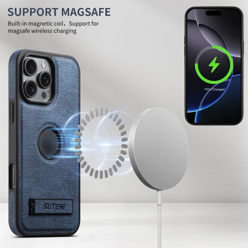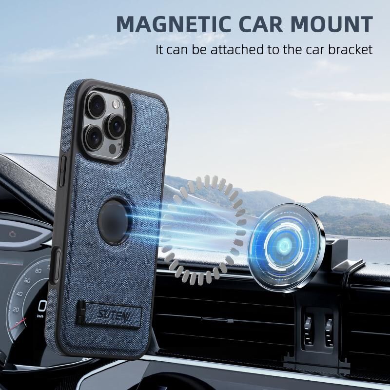 Θήκη τηλεφώνου MagSafe για iPhone 15 Pro Max Suteni G2 από δέρμα denim (Καφέ) (Suteni)