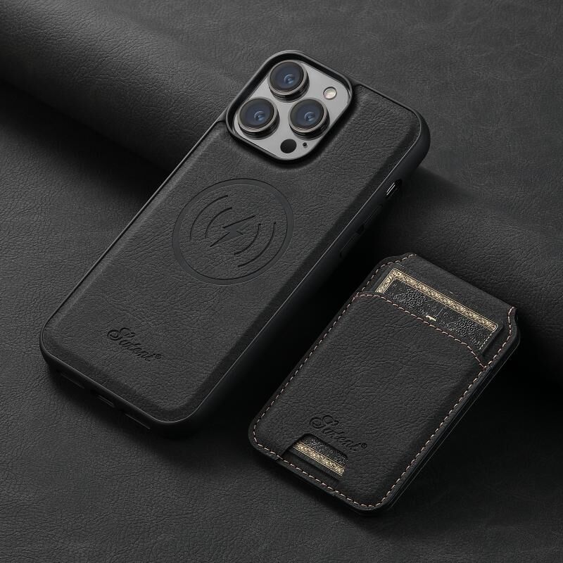 Θήκη κινητού τηλεφώνου με αποσπώμενο πορτοφόλι από δέρμα Litchi Suteni H16 για iPhone 15 Pro Max (Μαύρο) (Suteni)