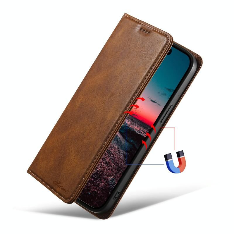 Θήκη τηλεφώνου από δέρμα με κερί λαδιού Suteni J02 για iPhone 15 Pro Max (Καφέ) (Suteni)