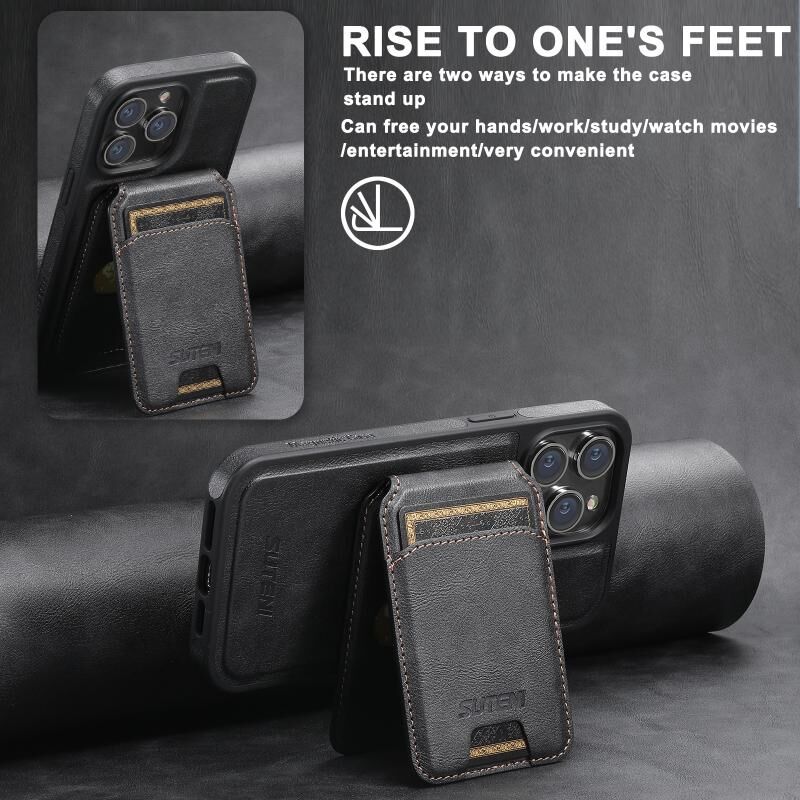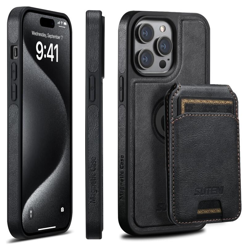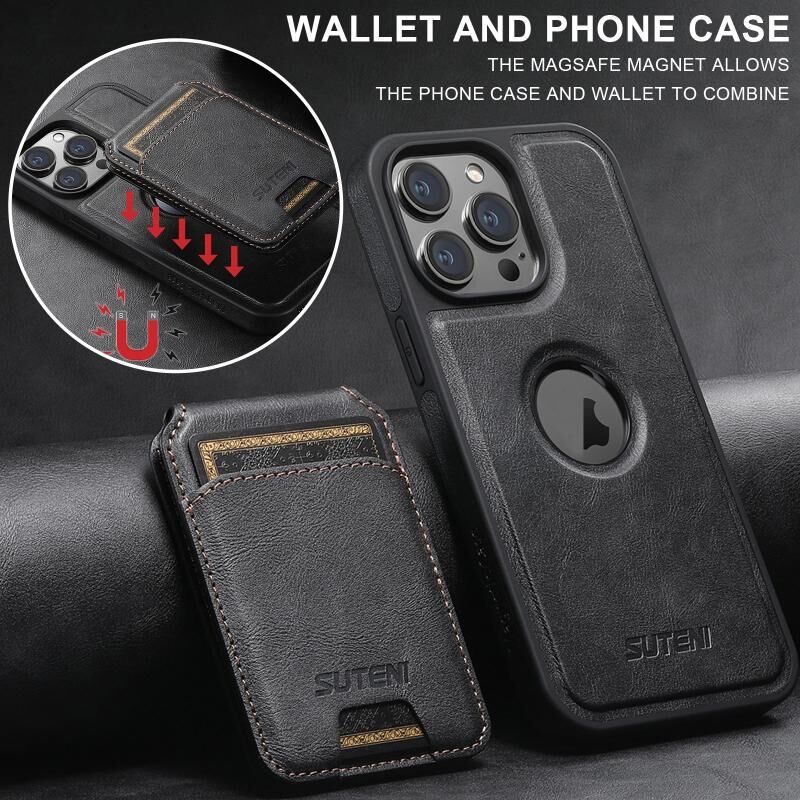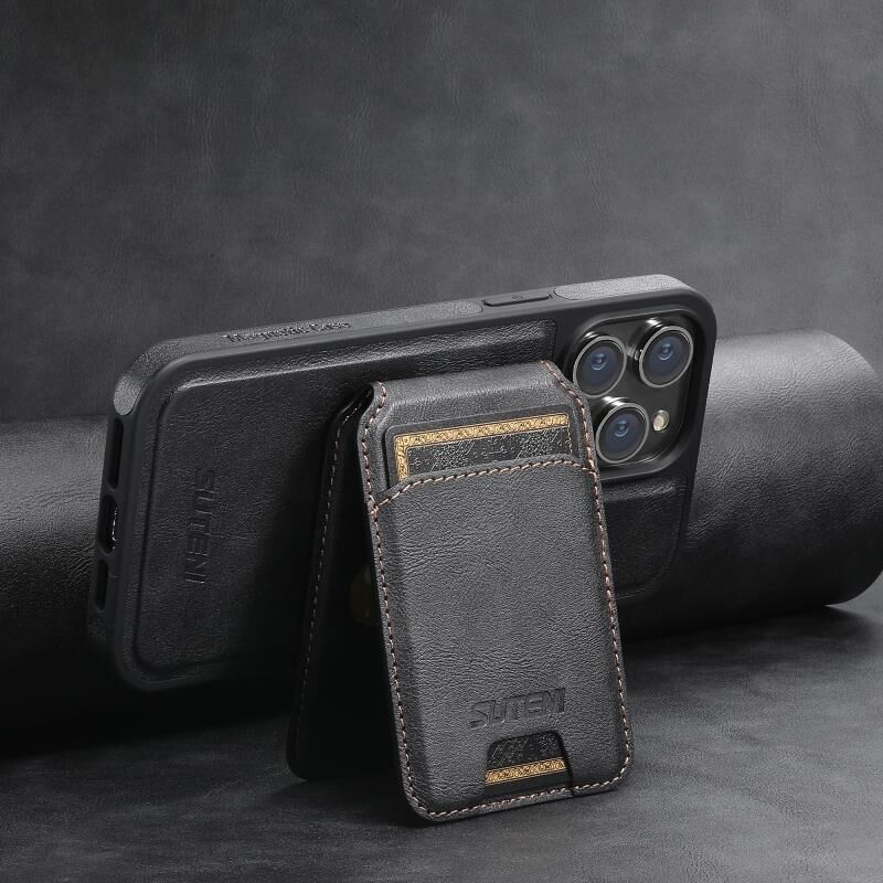 Θήκη τηλεφώνου για iPhone 15 Pro Max Suteni M2 Oil Wax MagSafe Οριζόντια Θήκη Κάρτας (Μαύρο) (Suteni)