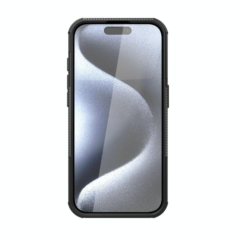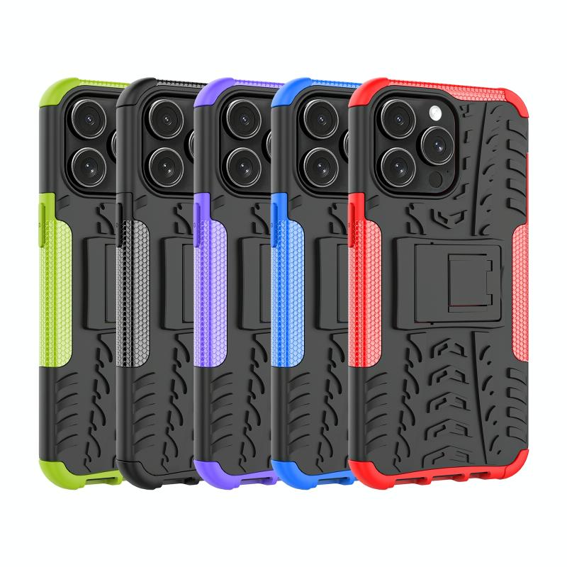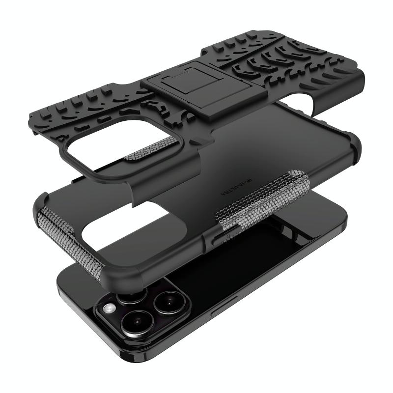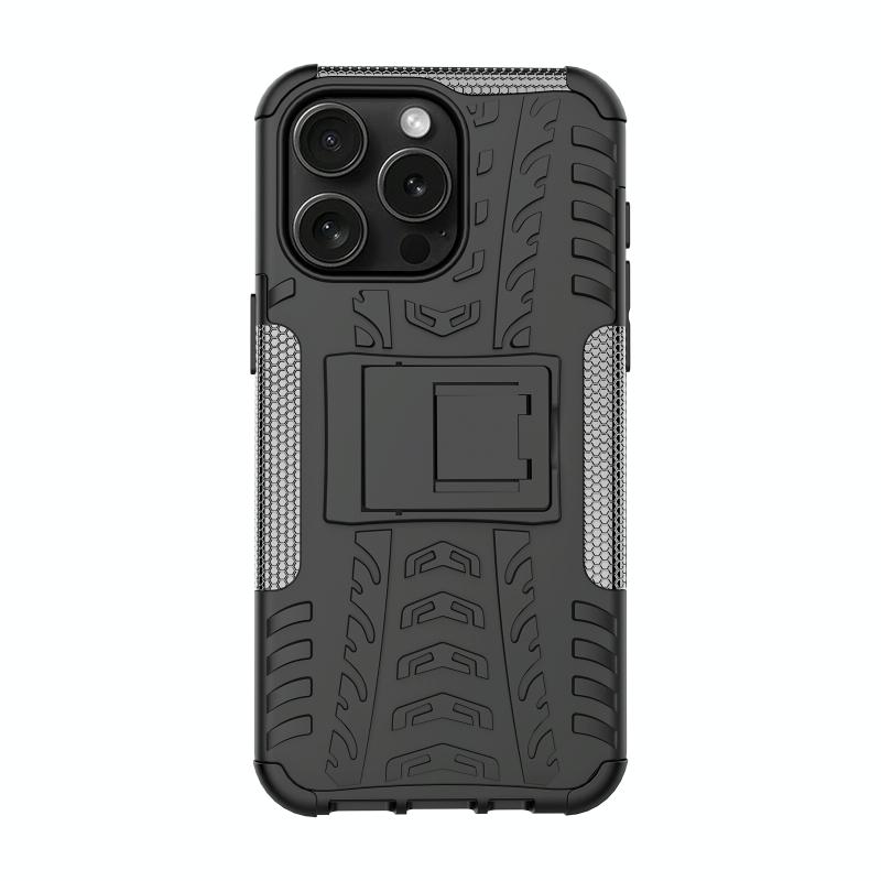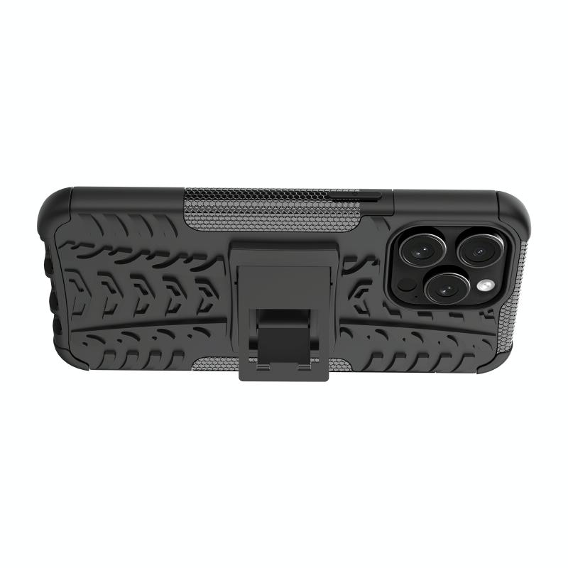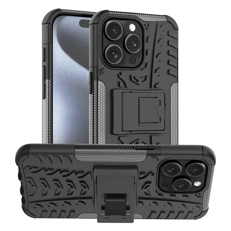 For iPhone 15 Pro Max Tire Texture TPU + PC Phone Case with Holder(Black)