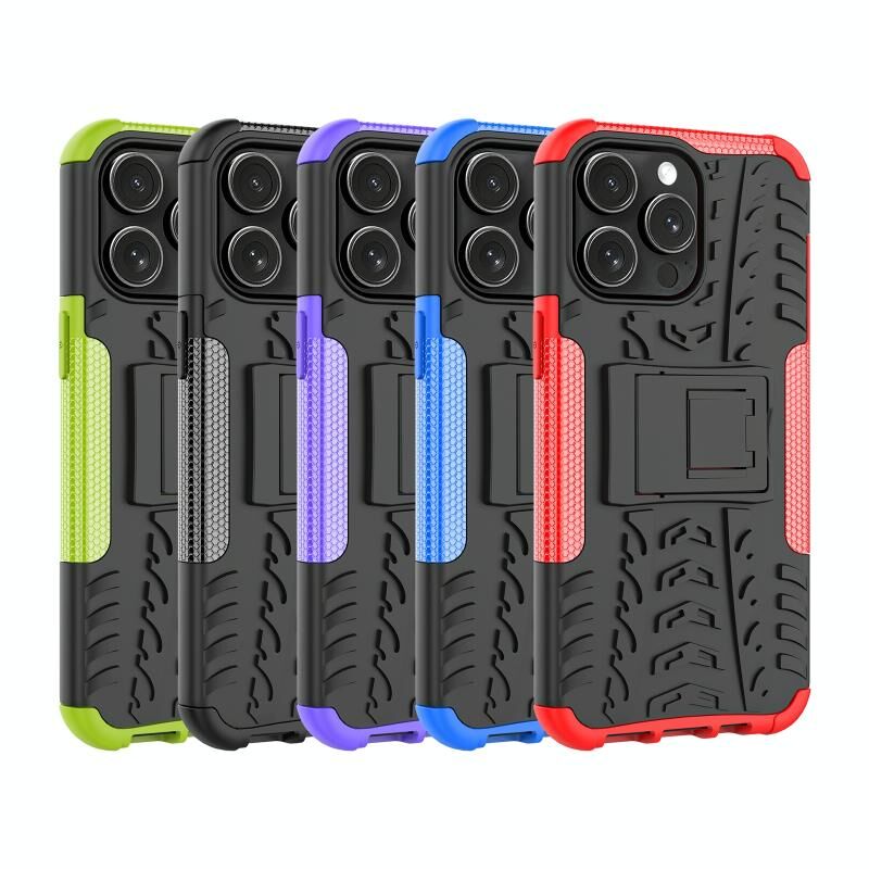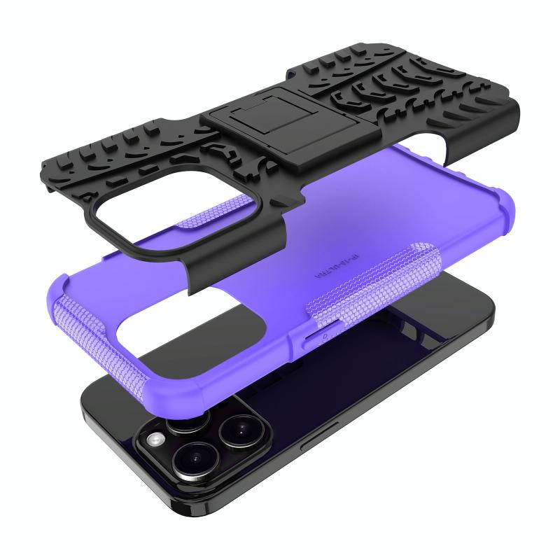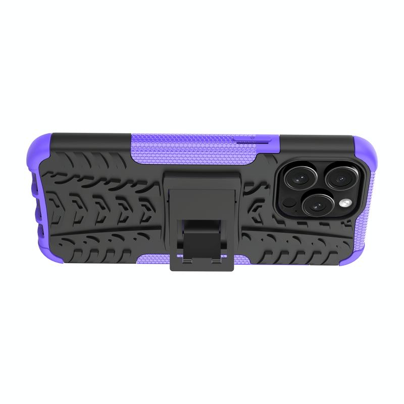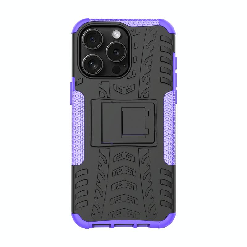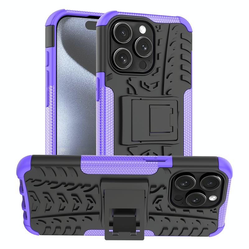 For iPhone 15 Pro Max Tire Texture TPU + PC Phone Case with Holder(Purple)