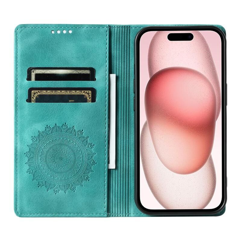 Θήκη τηλεφώνου από δέρμα με μαγνητική έλξη και ανάγλυφο σχέδιο Totem για iPhone 15 Pro Max (πράσινο)