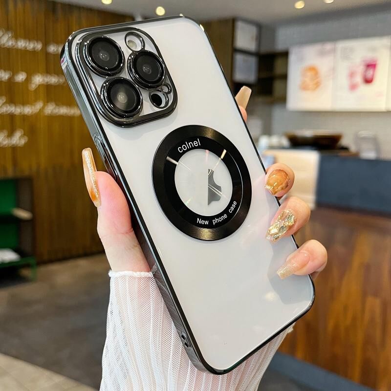 Θήκη τηλεφώνου για iPhone 15 Pro Max, Διαφανής, Επιχρυσωμένη από PC, με MagSafe (Κόκκινο Κρασί)