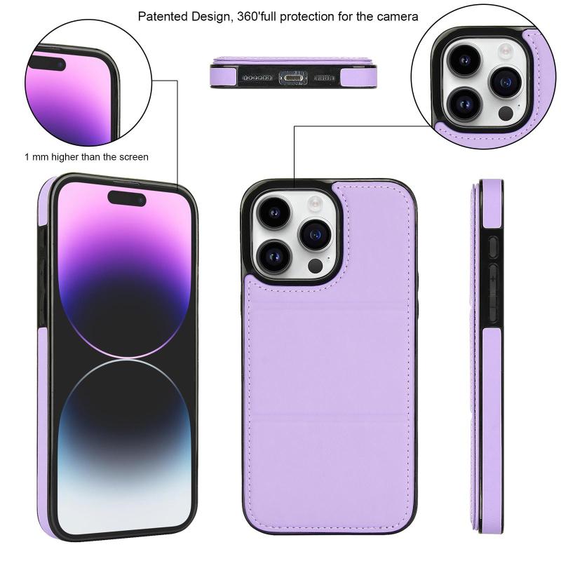 For iPhone 15 Pro Max Tri-fold Holder Leather Phone Case with Card Slot(Light Purple)