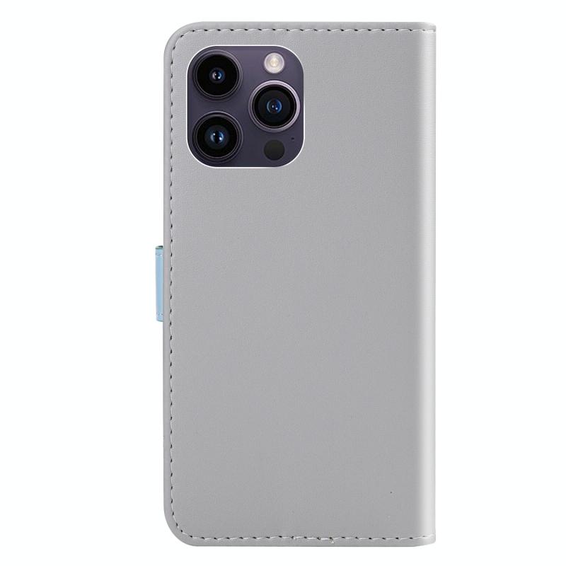 Θήκη τηλεφώνου δερμάτινη οριζόντιας αναδίπλωσης για iPhone 15 Pro Max με τριχρωμία ραφής (Γκρι)