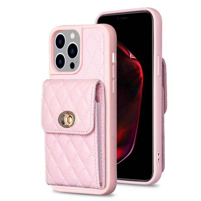 Θήκη τηλεφώνου κάθετη πορτοφόλι για iPhone 15 Pro Max, δερμάτινη με ρόμβους (Ροζ)