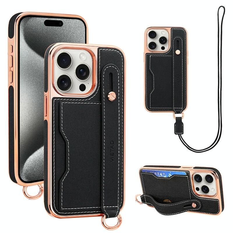 Θήκη κινητού VIETAO για iPhone 15 Pro Max με θηλιά καρπού και υποδοχή κάρτας, με κορδόνι (Κόκκινο) (VIETAO)