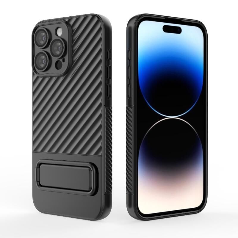 Θήκη τηλεφώνου TPU με κυματιστή υφή για iPhone 15 Pro Max με προστατευτική μεμβράνη φακού (Μαύρο)