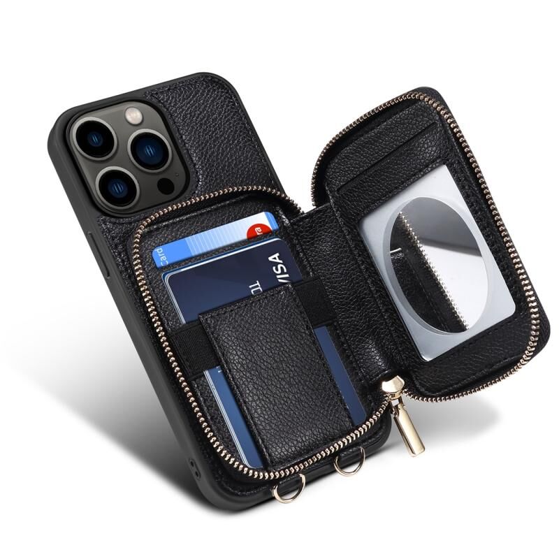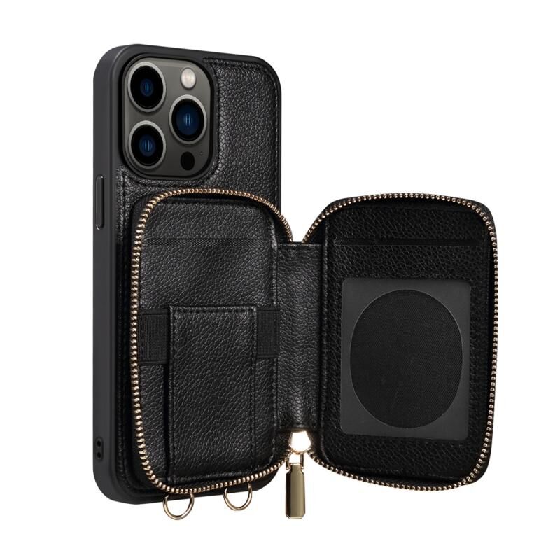 Θήκη τηλεφώνου με φερμουάρ και θήκη καρτών για iPhone 15 Pro Max (Μαύρο)