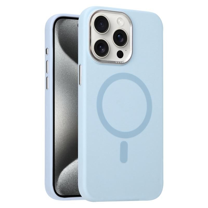 Θήκη τηλεφώνου για iPhone 15 Pro με μεταλλική στεφάνη φακού, υγρή σιλικόνη και MagSafe (Λευκό)