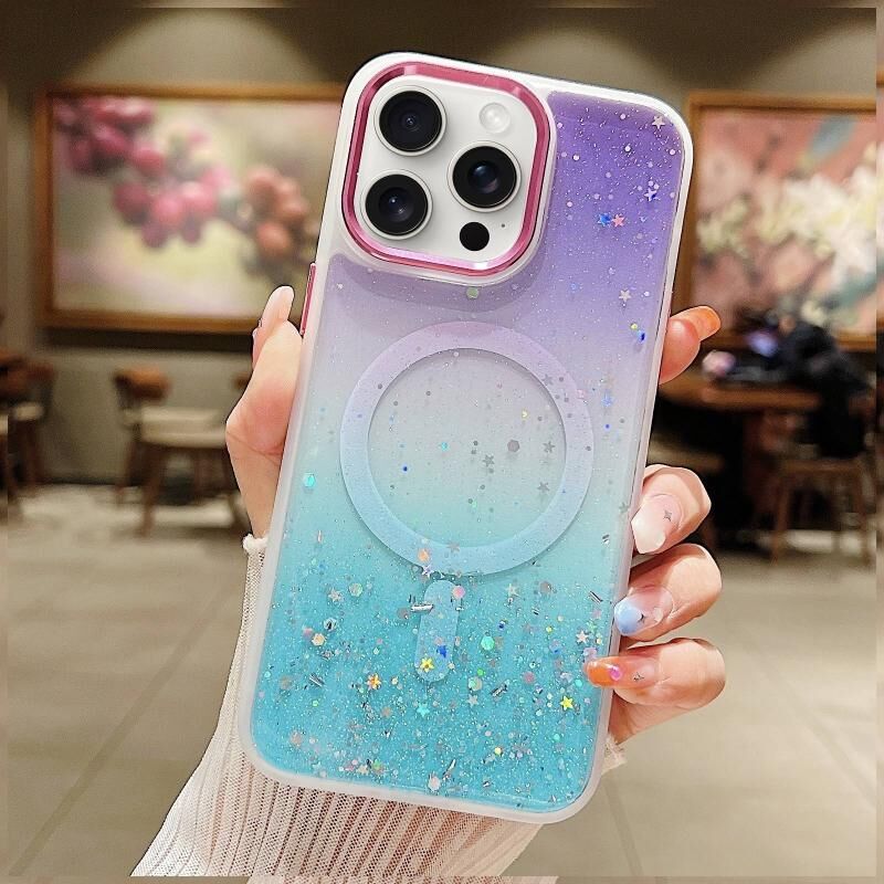 Θήκη τηλεφώνου για iPhone 15 Pro, πολύχρωμη διαβαθμισμένη, με γκλίτερ και παγιέτες, συμβατή με MagSafe, από TPU (Μπλε+Vert Anis)