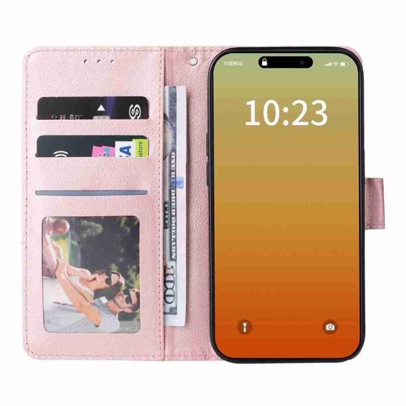 For iPhone 15 Pro Multifunctional Horizontal Flip Leather Phone Case with Three Card Slots(Rose Gold)