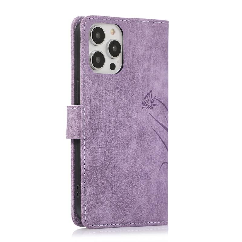 Θήκη τηλεφώνου από δέρμα με ανάγλυφο σχέδιο ορχιδέας και πεταλούδας για iPhone 15 Pro (Μαύρο)