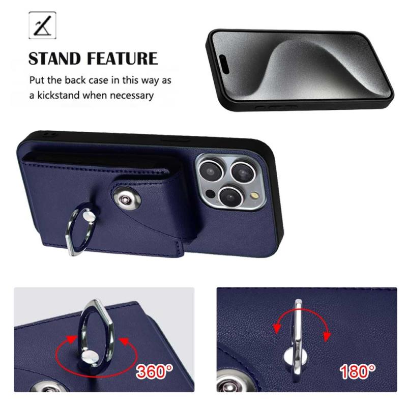 Θήκη τηλεφώνου για iPhone 15 Pro με κάρτα οργάνωσης, δακτύλιο και βάση στήριξης (Μπλε)