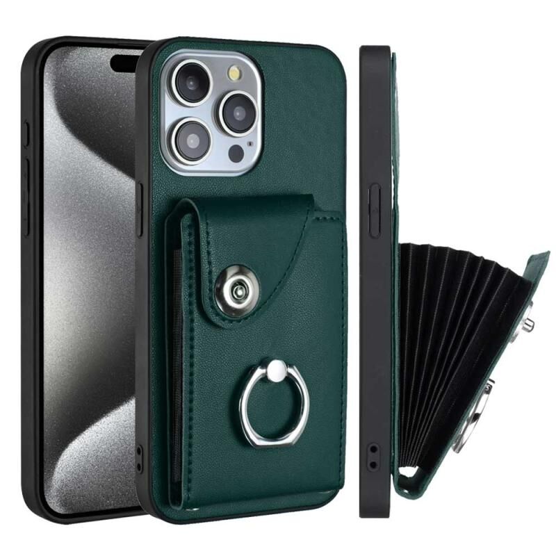 Θήκη τηλεφώνου για iPhone 15 Pro με κάρτα οργάνωσης, δακτύλιο και βάση στήριξης (πράσινο)