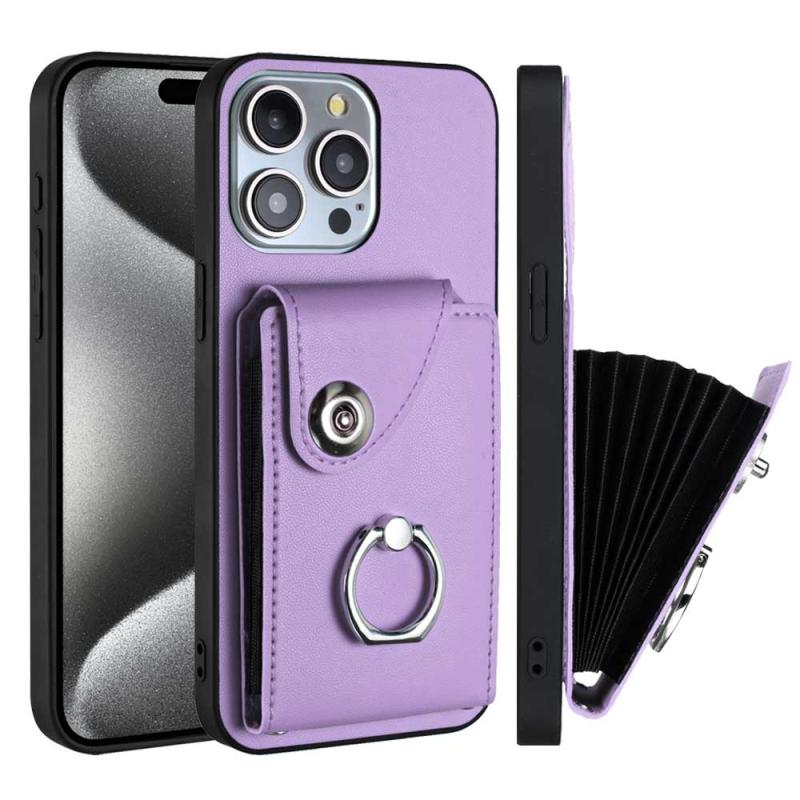 Θήκη τηλεφώνου για iPhone 15 Pro με κάρτα οργάνωσης, δακτύλιο και βάση στήριξης (Μωβ)