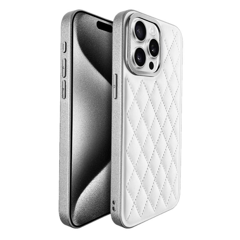 For iPhone 15 Pro Plaid Series 9D Electroplated Phone Case(Titanium Silver)