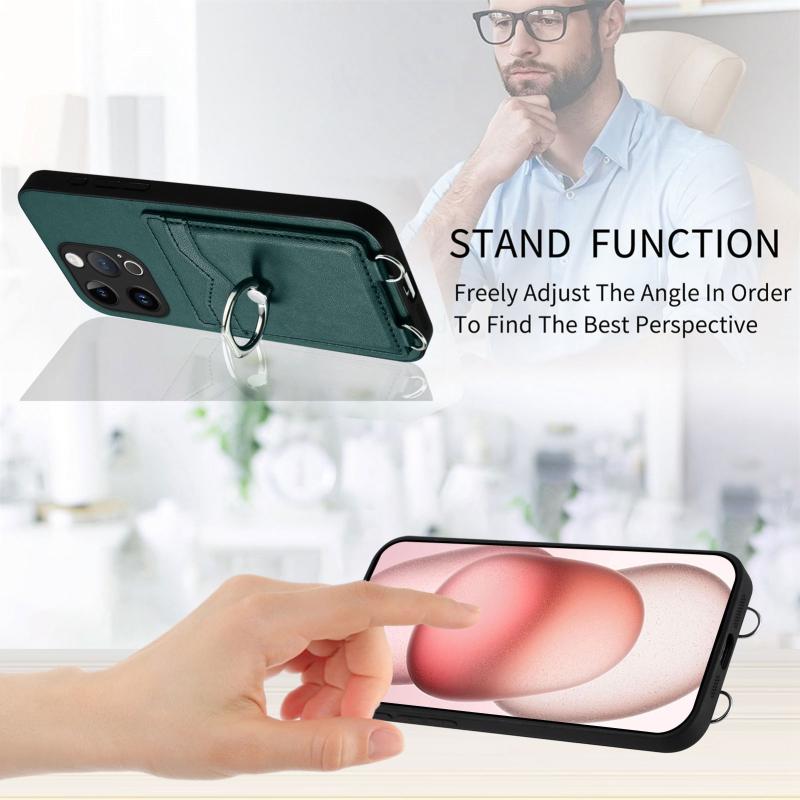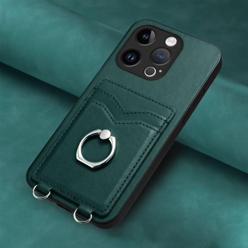 For iPhone 15 Pro R20 Ring Card Holder Phone Case(Green)