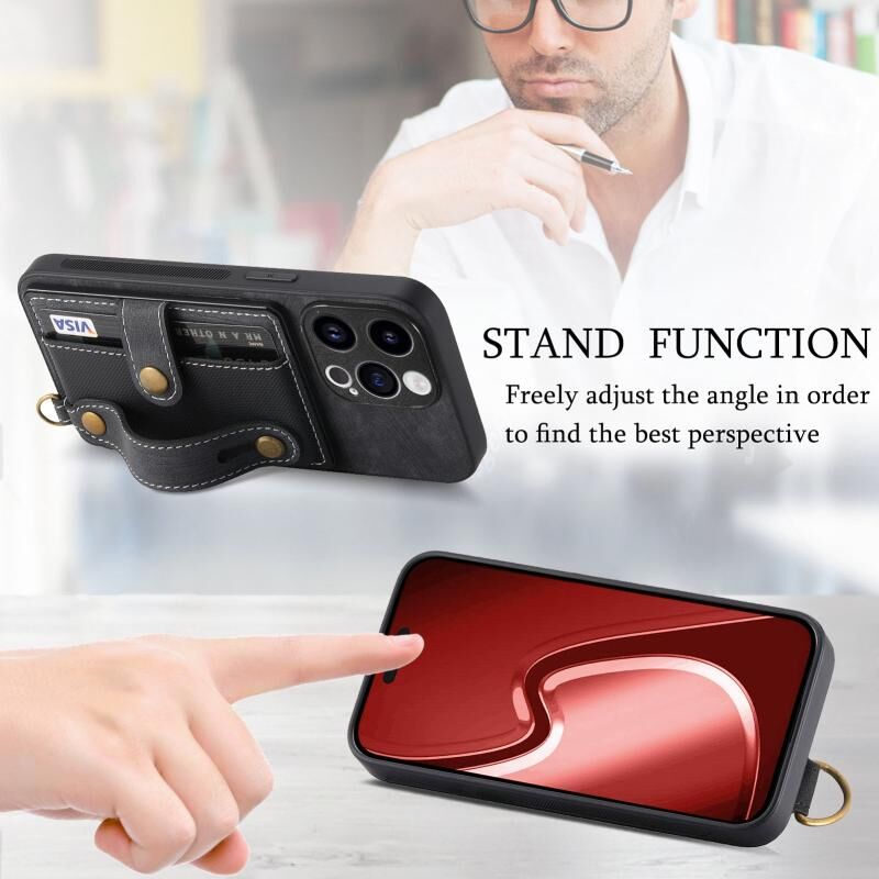 For iPhone 15 Pro Retro Cross Wristband Wallet Leather Back Phone Case(Black)