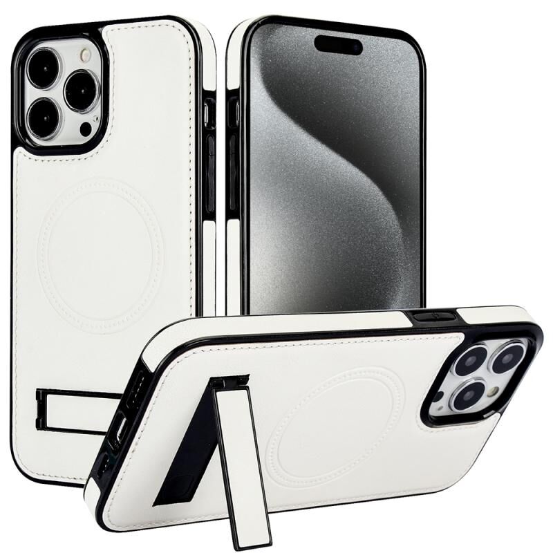 Θήκη τηλεφώνου MagSafe για iPhone 15 Pro από δέρμα σε ρετρό στυλ με αόρατο στήριγμα (Λευκό)