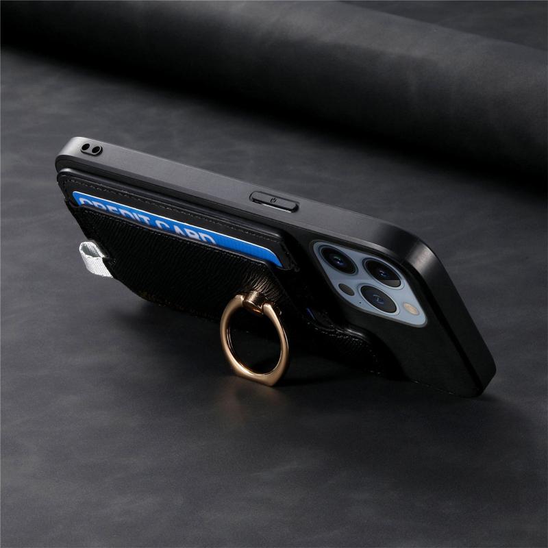 For iPhone 15 Pro Retro Magsafe Cross Leather Ring Holder Card Bag Phone Case(Black)