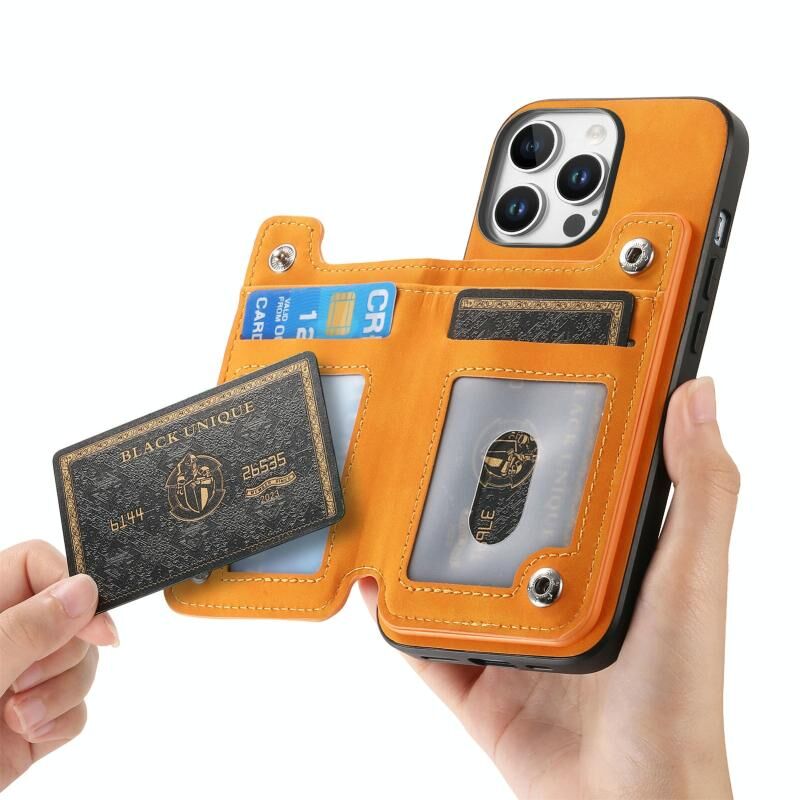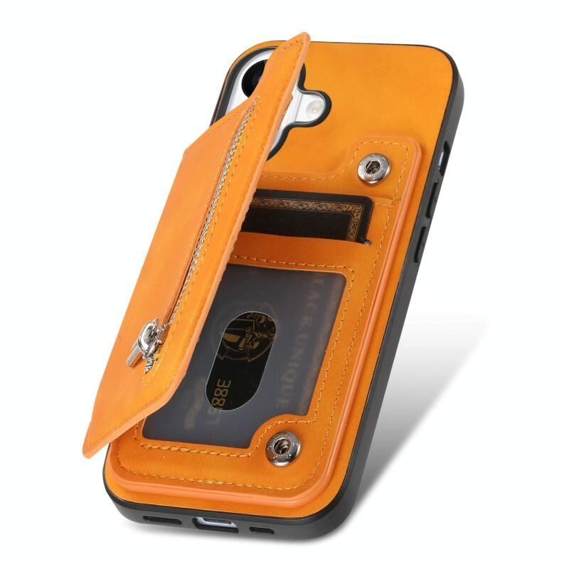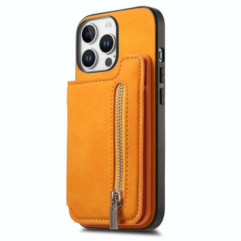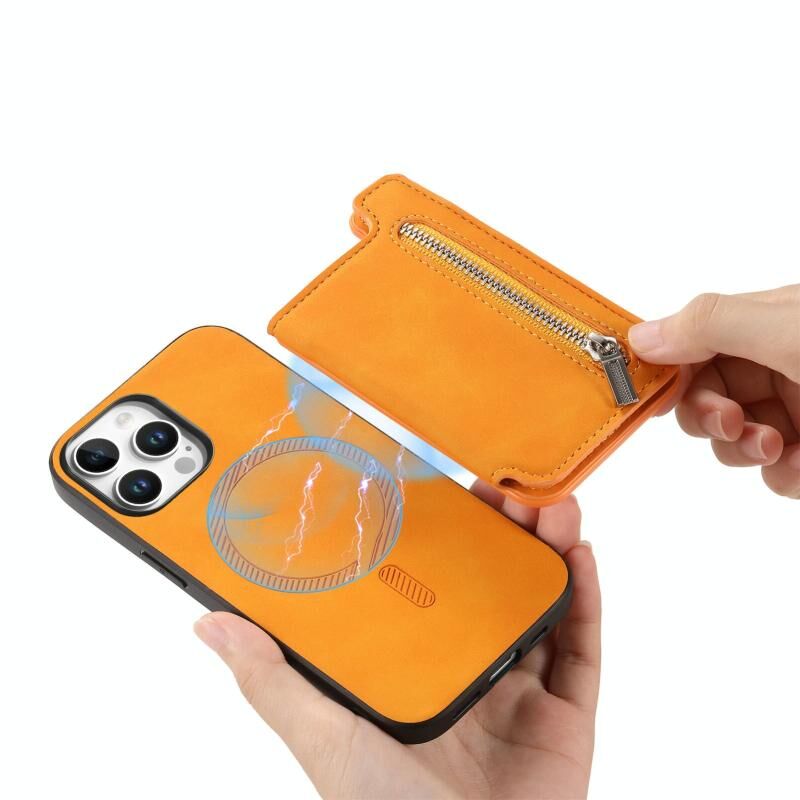 Θήκη κινητού για iPhone 15 Pro με Retro MagSafe, πορτοφόλι με φερμουάρ και θήκη για κάρτες (Κίτρινο)