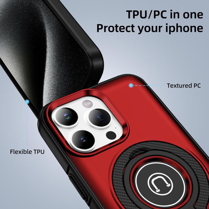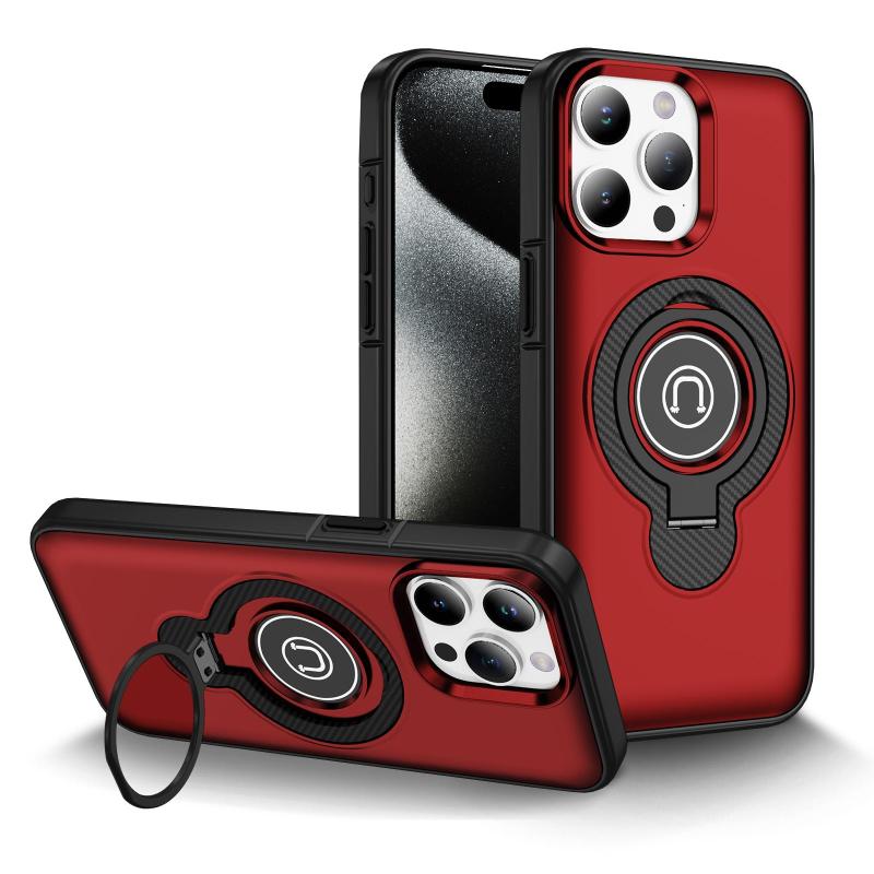 For iPhone 15 Pro Ring Holder Magnetic Phone Case(Red)