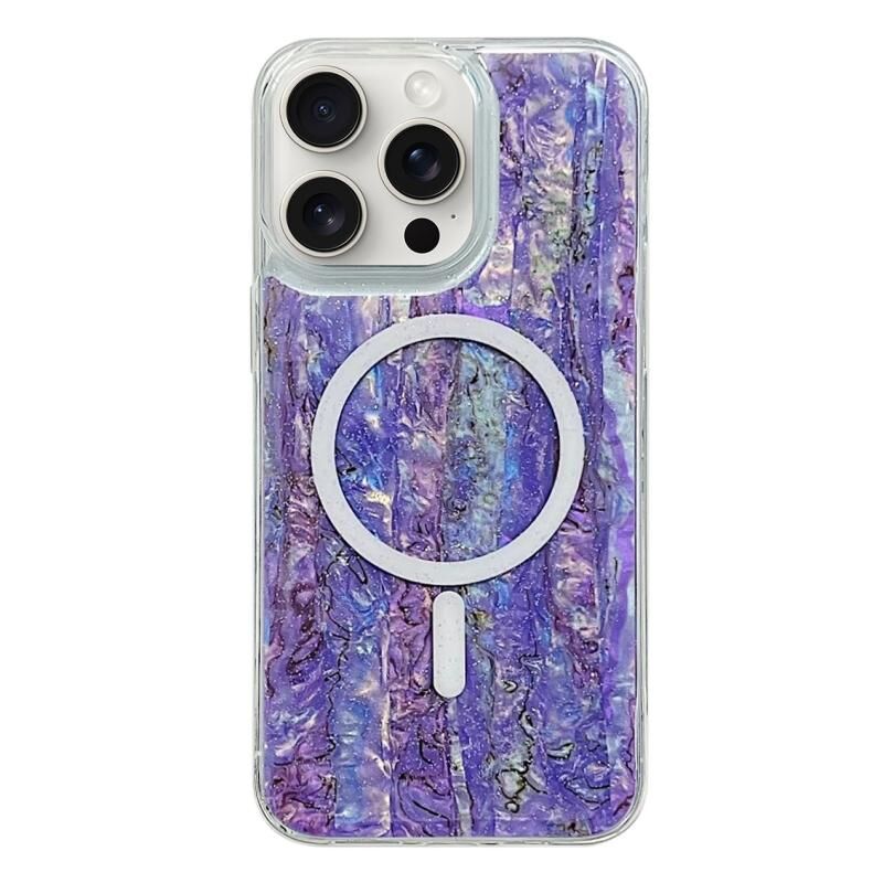 For iPhone 15 Pro Shell Texture Multicolor MagSafe TPU Phone Case(Purple)
