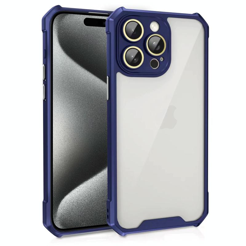 For iPhone 15 Pro Shockproof Acrylic Phone Case with Lens Glass Film(Blue)