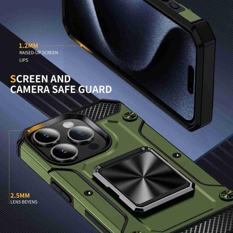 Θήκη τηλεφώνου για iPhone 15 Pro ανθεκτική στις κρούσεις με μεταλλική βάση στήριξης (Χακί Πράσινο)