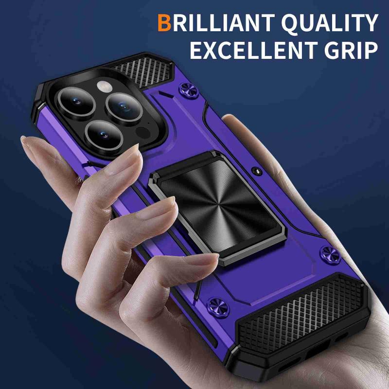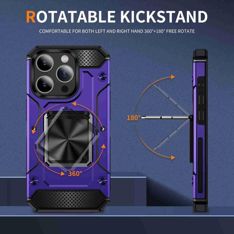 For iPhone 15 Pro Shockproof Metal Holder Phone Case(Purple)