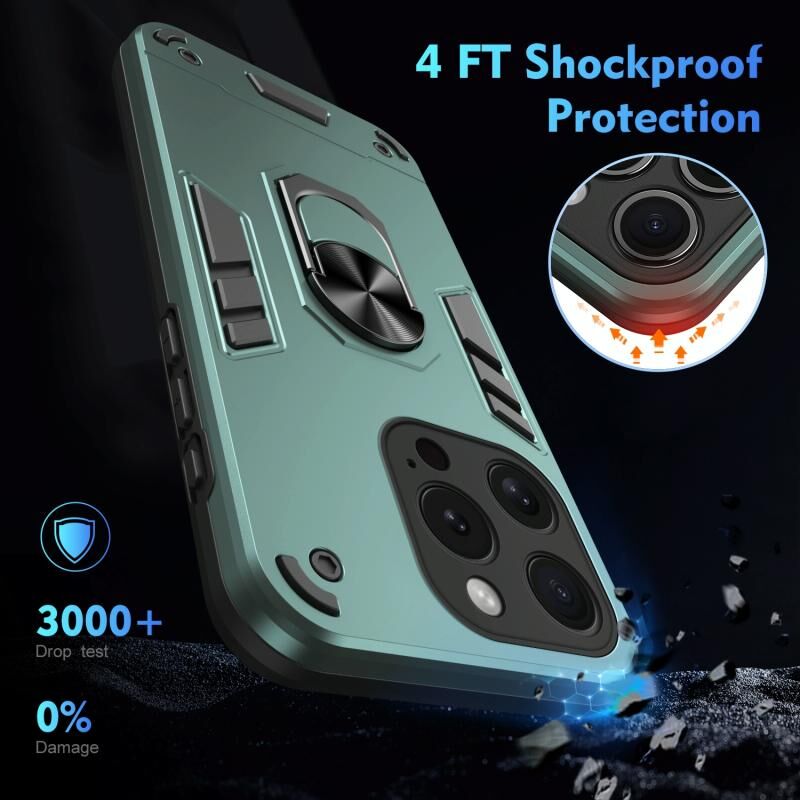 Θήκη τηλεφώνου για iPhone 15 Pro με μεταλλική βάση δακτυλιδιού ανθεκτική στις κρούσεις (Πράσινο)