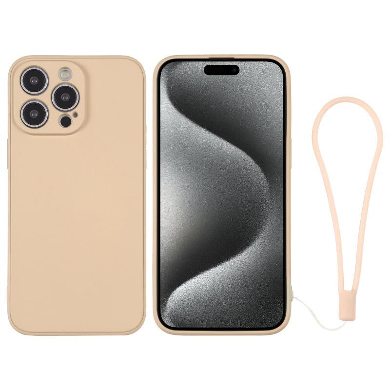 Θήκη σιλικόνης για iPhone 15 Pro με λουρί καρπού (Ροζ Λωτού)