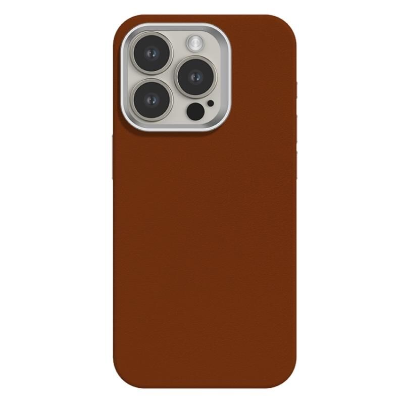 Θήκη για iPhone 15 Pro με υφή λεπτού δέρματος, μεταλλικό πλαίσιο φακού και υποστήριξη MagSafe (Κίτρινο)