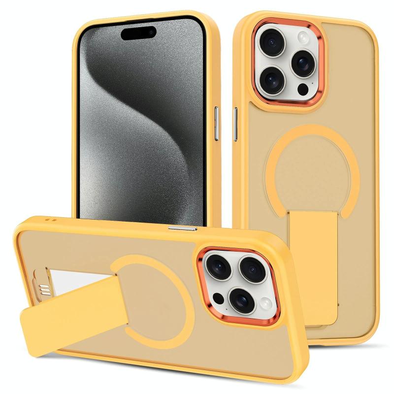 For iPhone 15 Pro Skin Feel Invisible Kickstand MagSafe Phone Case(Orange)