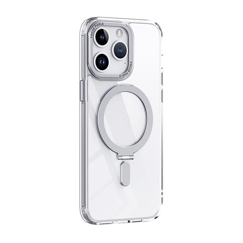 Θήκη για iPhone 15 Pro με αίσθηση δέρματος, MagSafe, αντικραδασμική με βάση στήριξης (Λευκό)