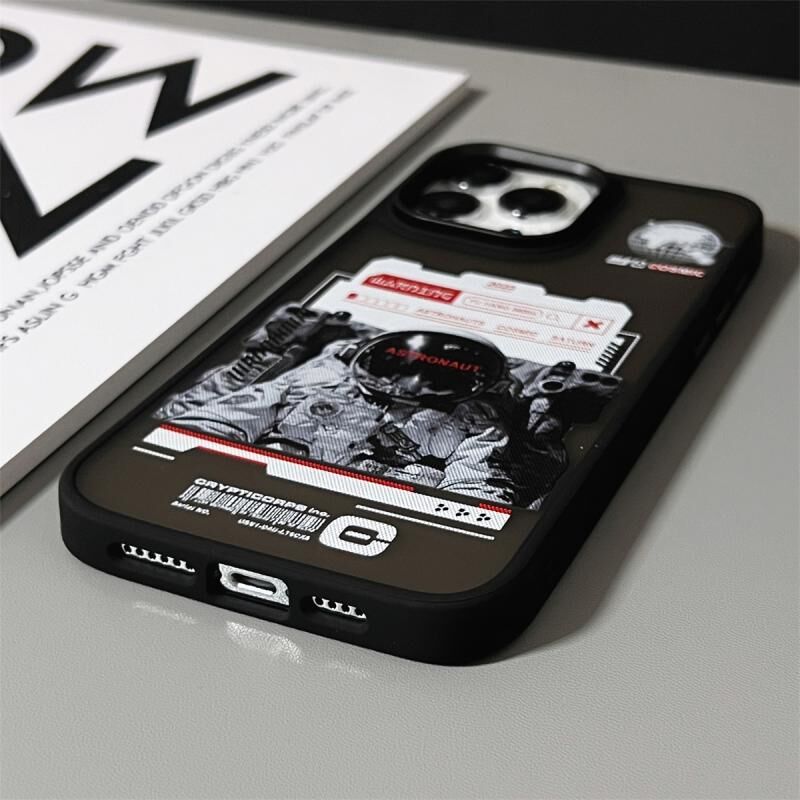 Θήκη για iPhone 15 Pro με αίσθηση δέρματος, ματ, από TPU+PC ανθεκτική στις κρούσεις (Διαστημικός Αστροναύτης)