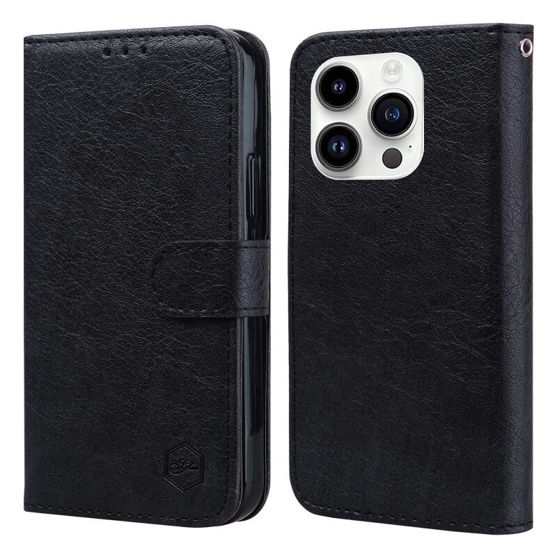 Θήκη τηλεφώνου για iPhone 15 Pro με υφή δέρματος λαδιού και αίσθηση δέρματος, κατασκευασμένη από PU + TPU (Μαύρο)