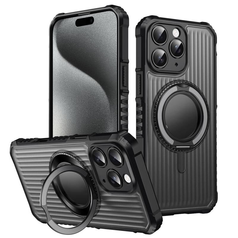 For iPhone 15 Pro Skin Sense Rotation Stand Semi-transparent Magsafe Phone Case(Space Gray)